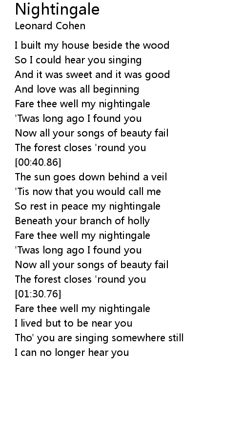 Fare thee well my nightingale |