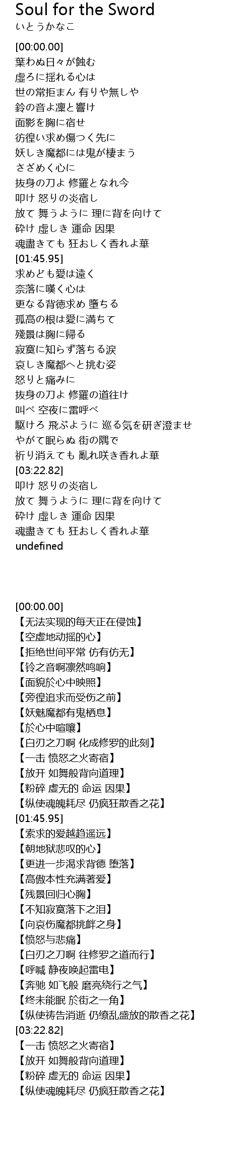 | [02:38.57] | 抜身の刀よ 修羅の道往け |