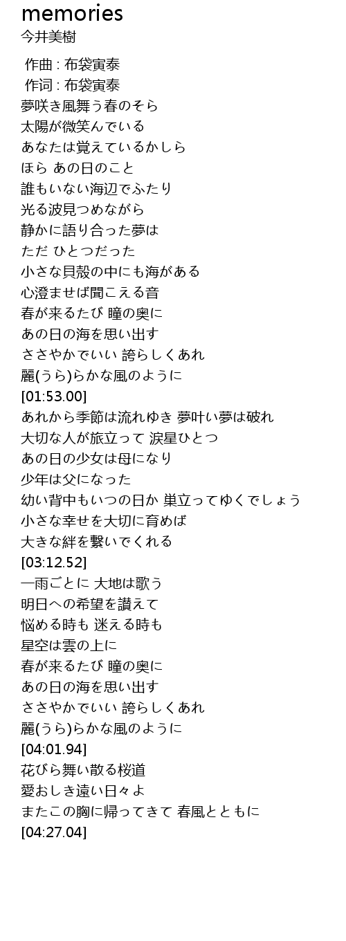 | [03:38.12] | 春が来るたび 瞳の奥に |