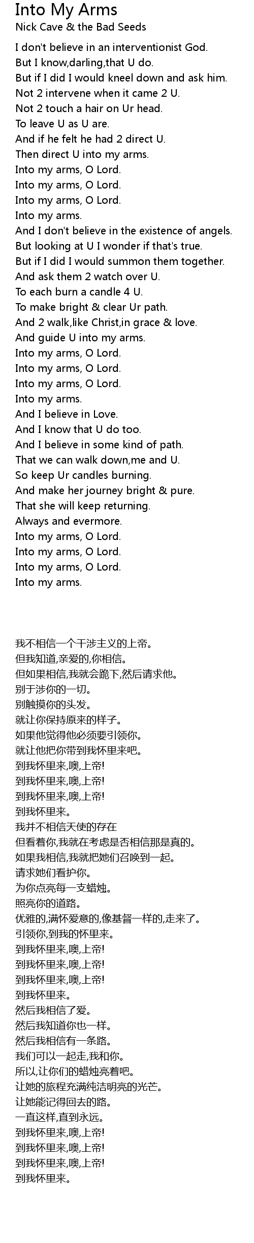 Into my arms, O Lord. |