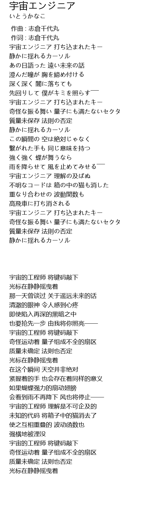| [00:12.140] | 宇宙エンジニア 打ち込まれたキー |