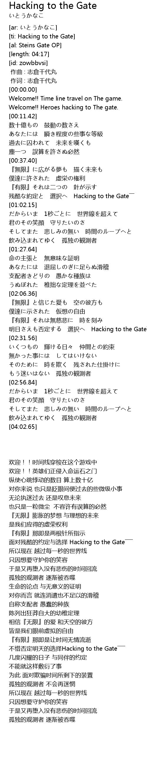 | [00:55.52] | 残酷な約定と 選択へ Hacking to the Gate―― |