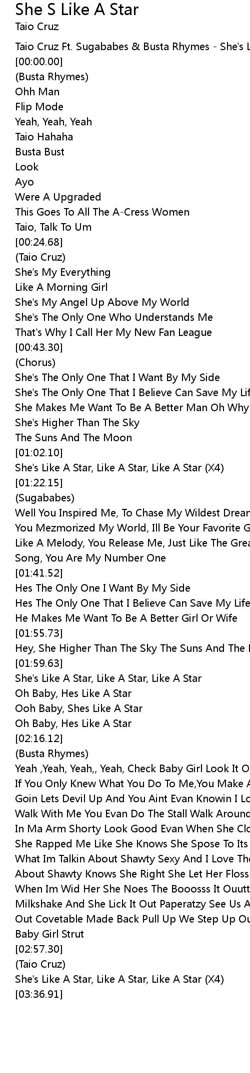 She's Like A Star, Like A Star, Like A Star (X4) |
