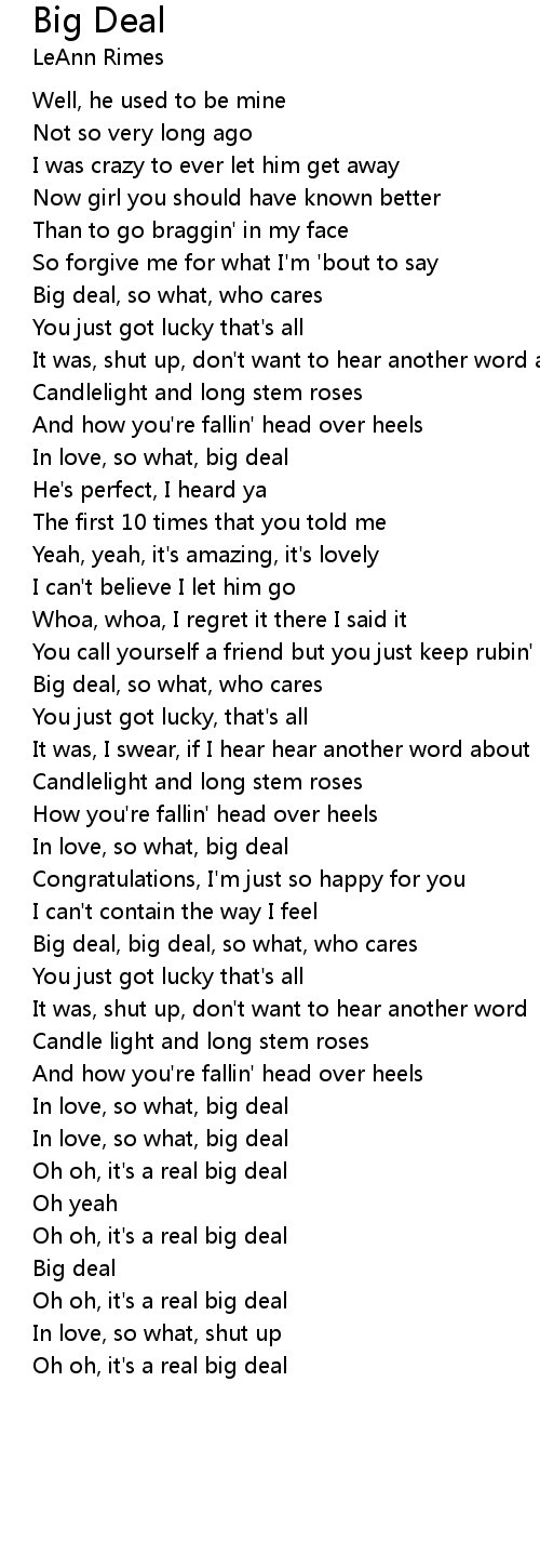 Oh oh, it's a real big deal |