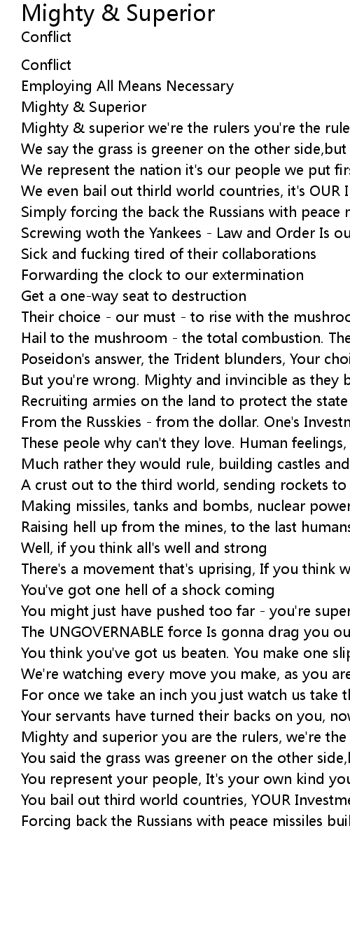 Mighty & superior we're the rulers you're the ruled. |