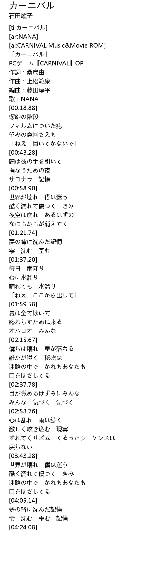 | [00:03.30] | PCゲーム『CARNIVAL』OP |