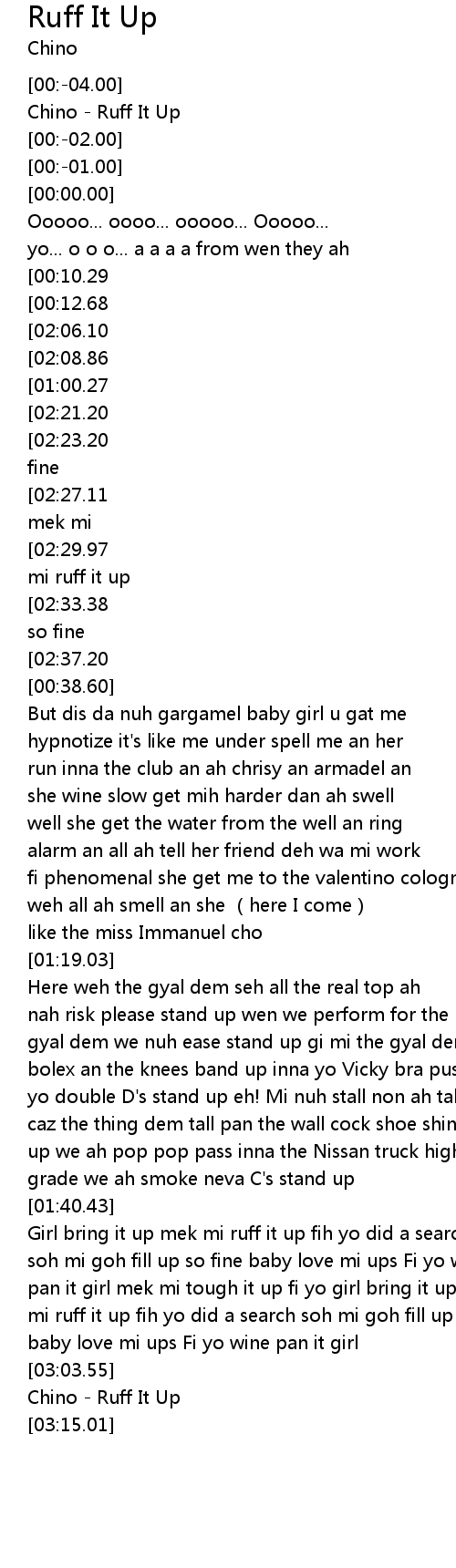 | [01:41.20] | Girl bring it up mek mi ruff it up fih yo did a search |