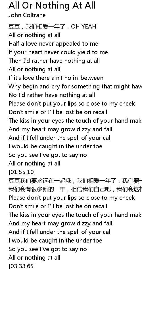 | [00:44.56] | If it' s love there ain' t no inbetween |