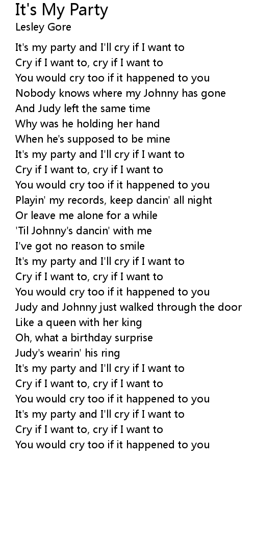 It's my party and I'll cry if I want to |