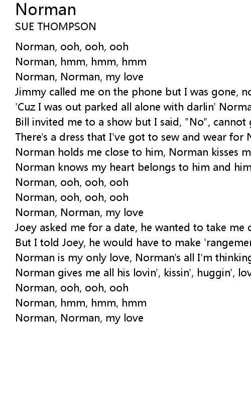 Norman gives me all his lovin', kissin', huggin', lovey-dovin' |