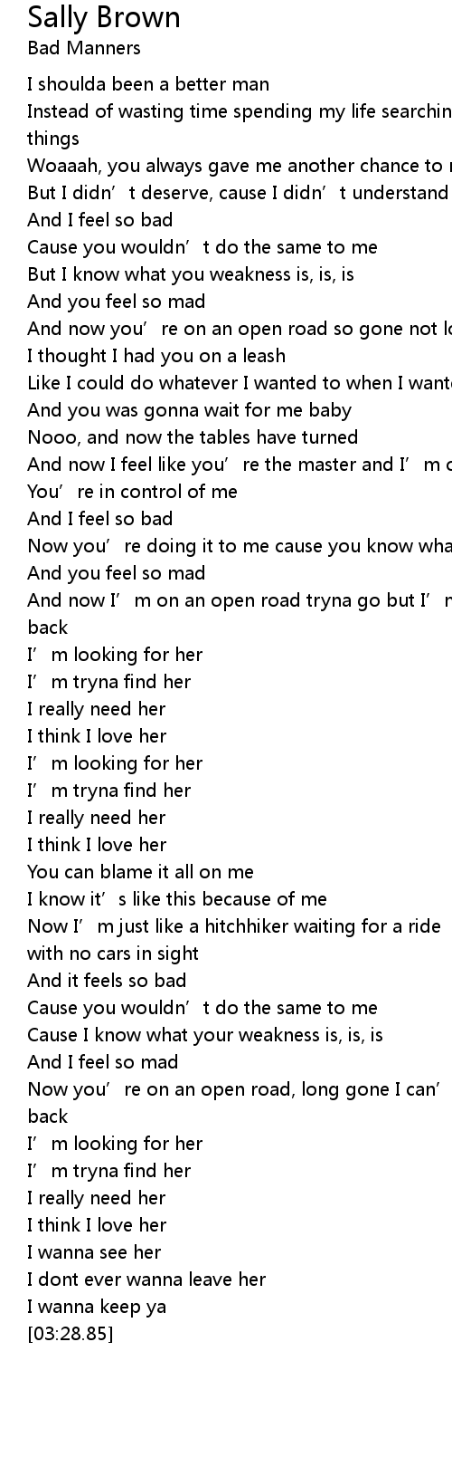 | [01:59.55] | And now I’m on an open road tryna go but I’m looking back, back, back |