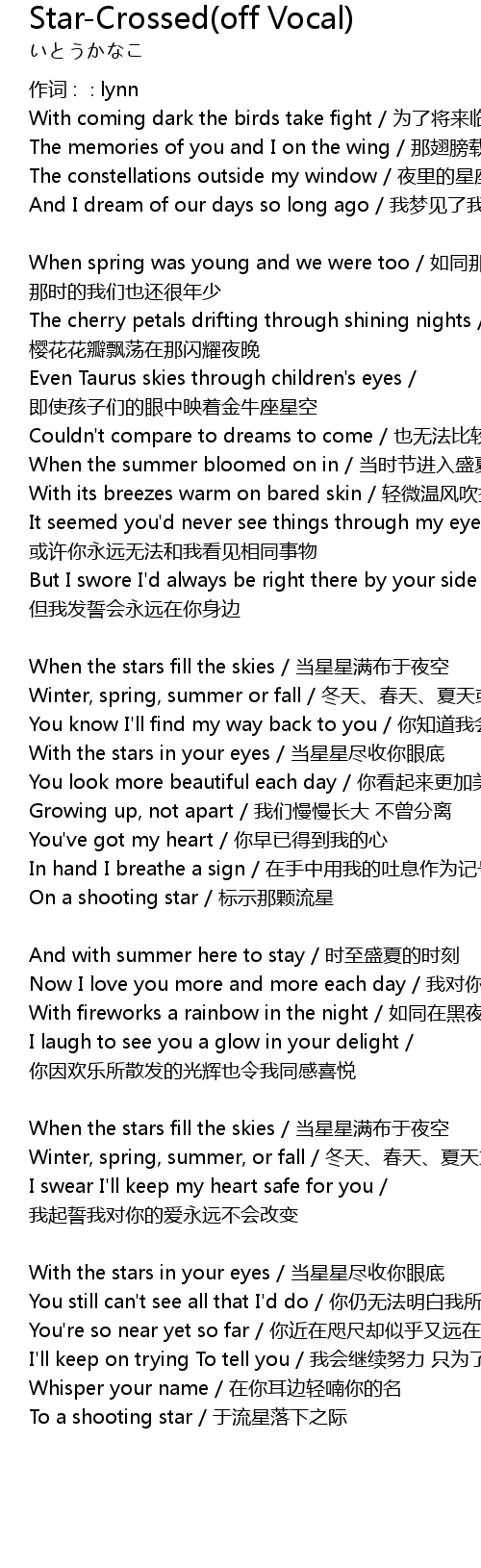 | When the stars fill the skies dang xing xing man bu yu ye kong | |
