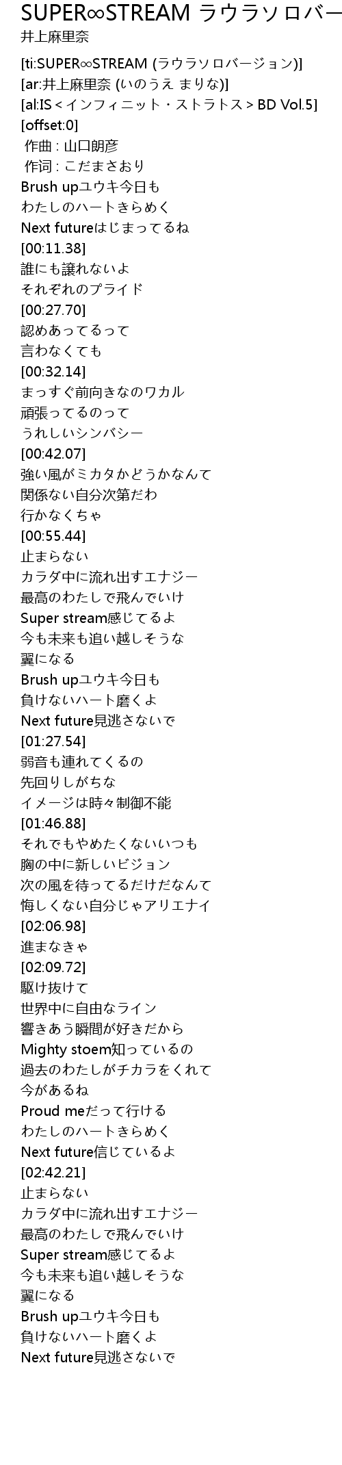 | [ti:SUPER∞STREAM (ラウラソロバージョン)] | |