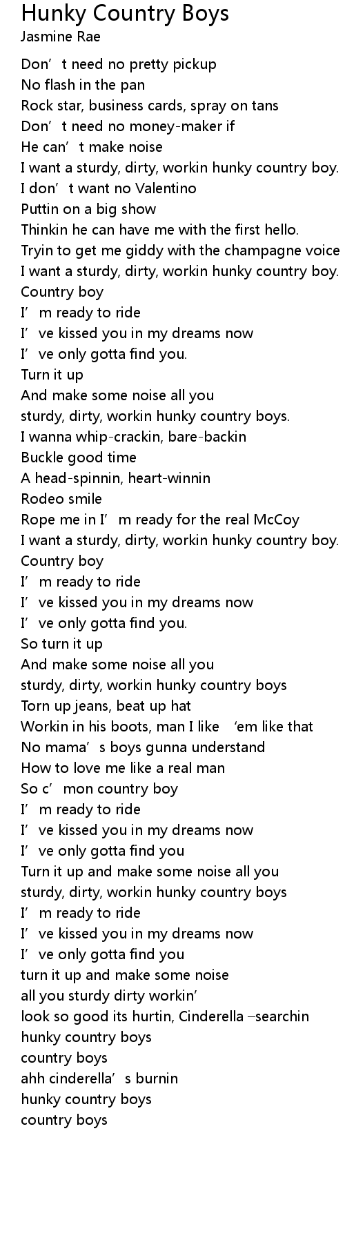 | I want a sturdy, dirty, workin hunky country boy. | |