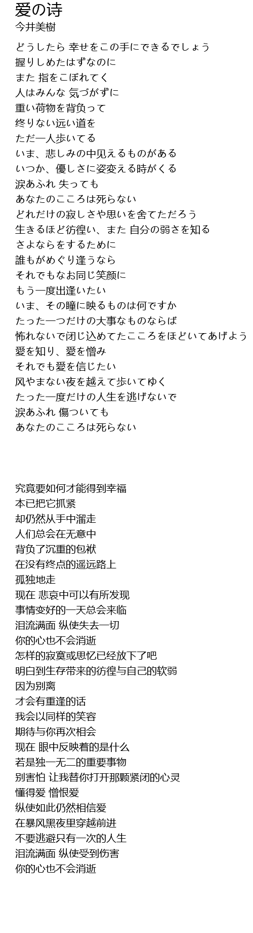| [04:14.99] | あなたのこころは死らない |