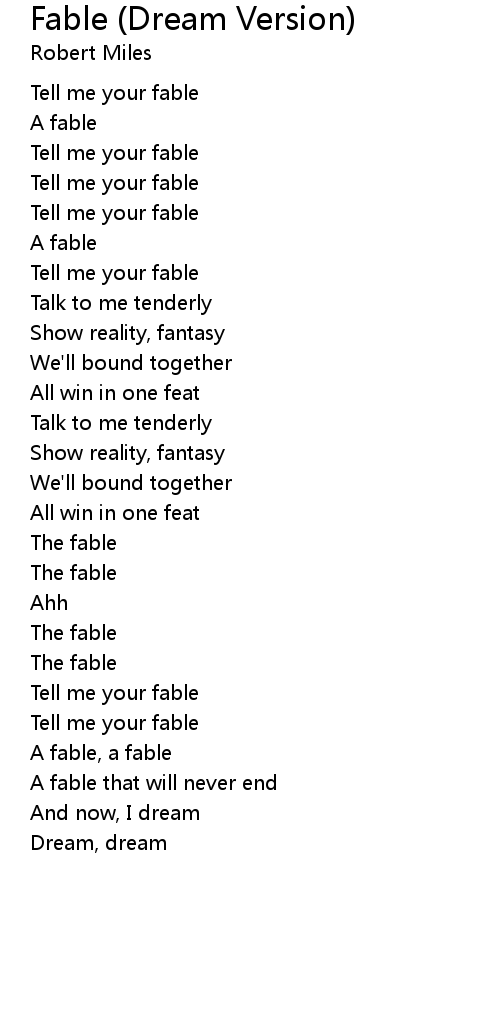 | Tell me your fable | |