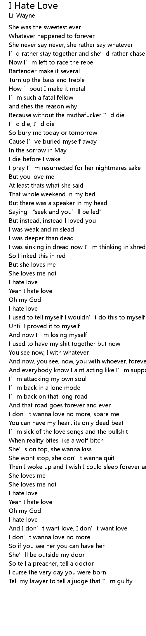 | Yeah I hate love | |