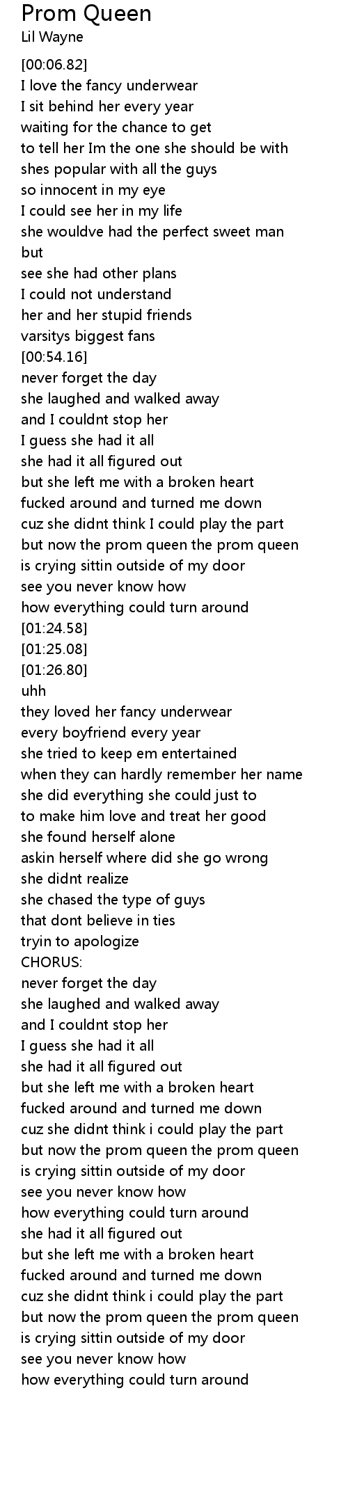but now the prom queen the prom queen |