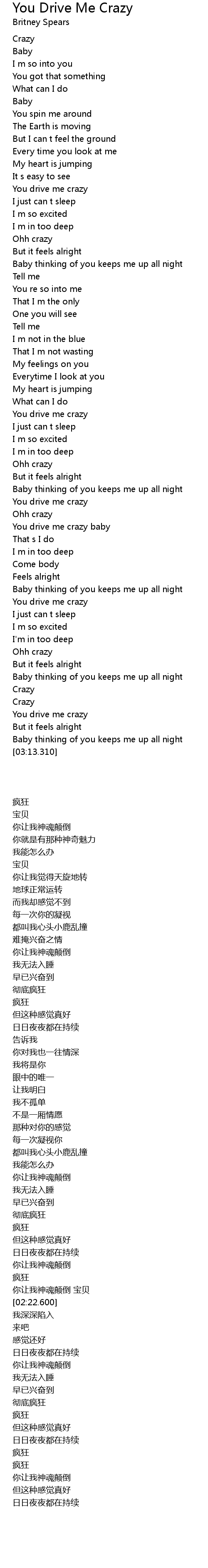 You drive me crazy baby |
