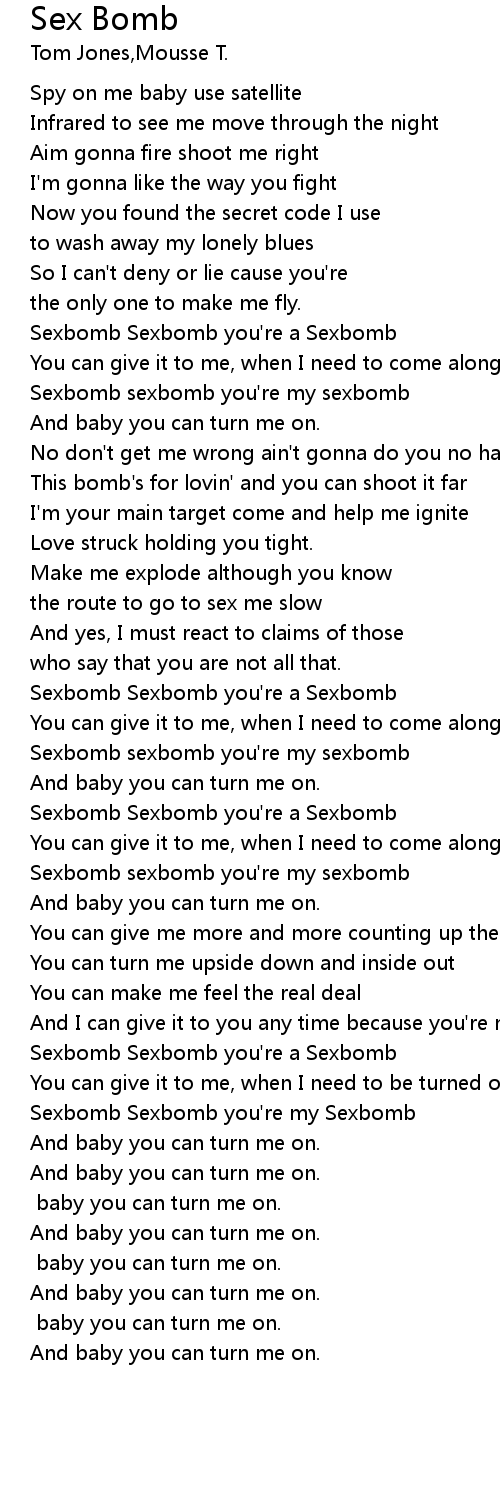 | Sexbomb Sexbomb you're my Sexbomb | |
