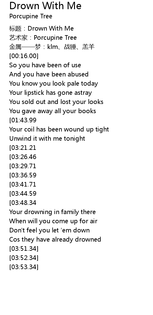 | [01:28.11][01:43.99][02:30.28][02:45.91] | You should drown with me |