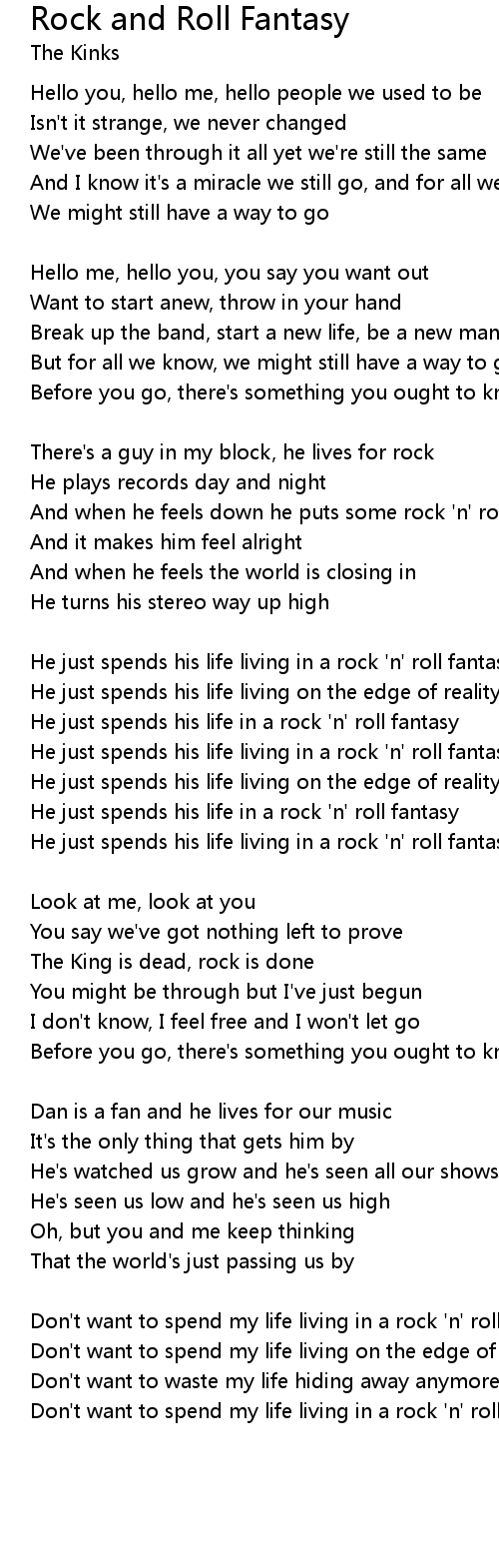 Don't want to spend my life living in a rock 'n' roll fantasy |