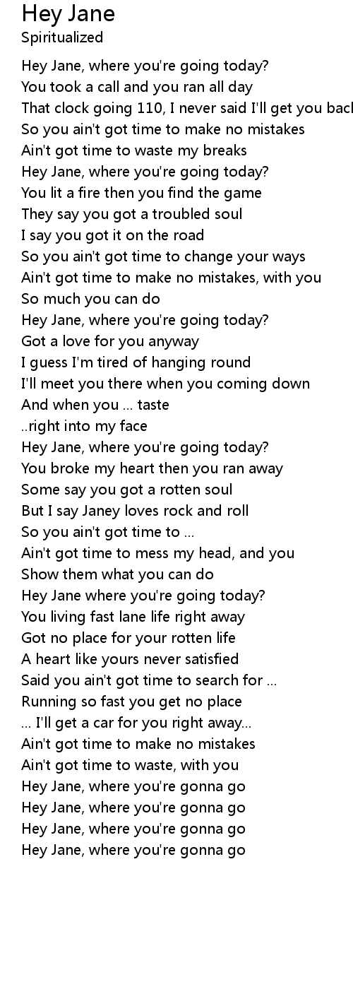 Hey Jane, where you're gonna go |