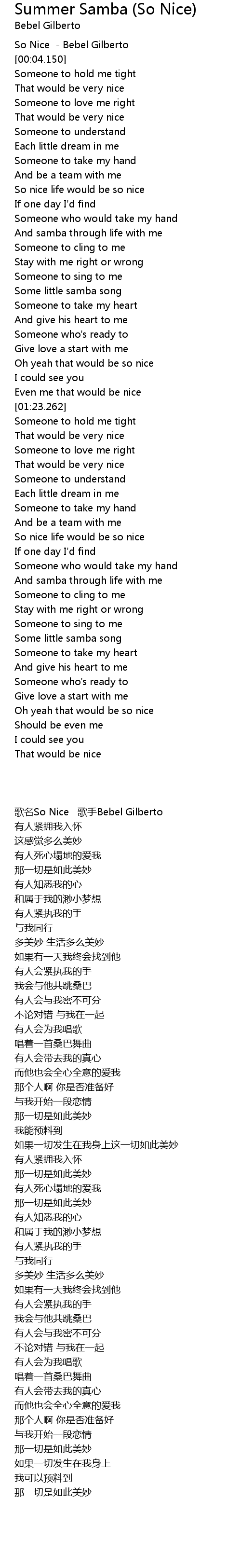 And samba through life with me |