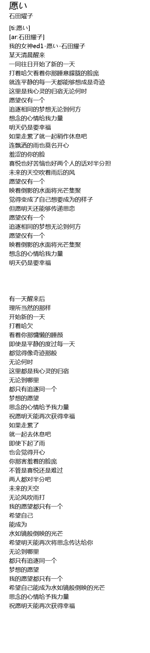 | [00:02.100] | 我的女神ed1-愿い-石田耀子 |
