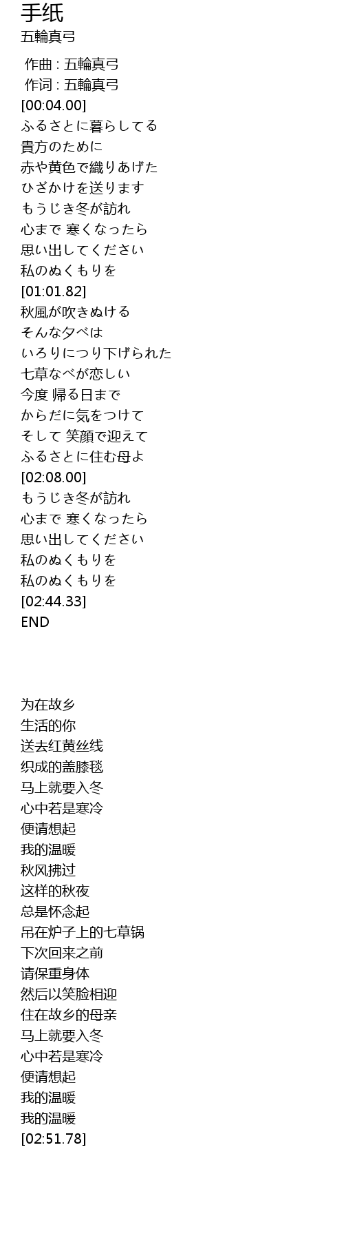 | [01:47.34] | からだに気をつけて |