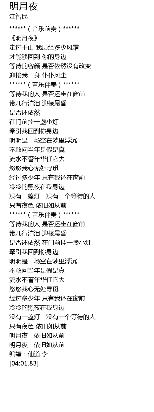 | [03:42.41] | 明月夜 依旧如从前 |