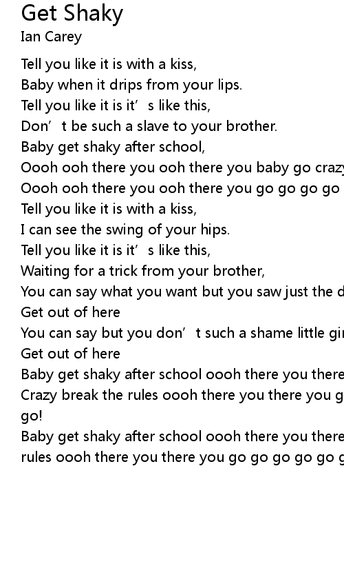 | Baby get shaky after school oooh there you there you baby go crazy break the rules oooh there you there you go go go go go go oh oh there you go! |