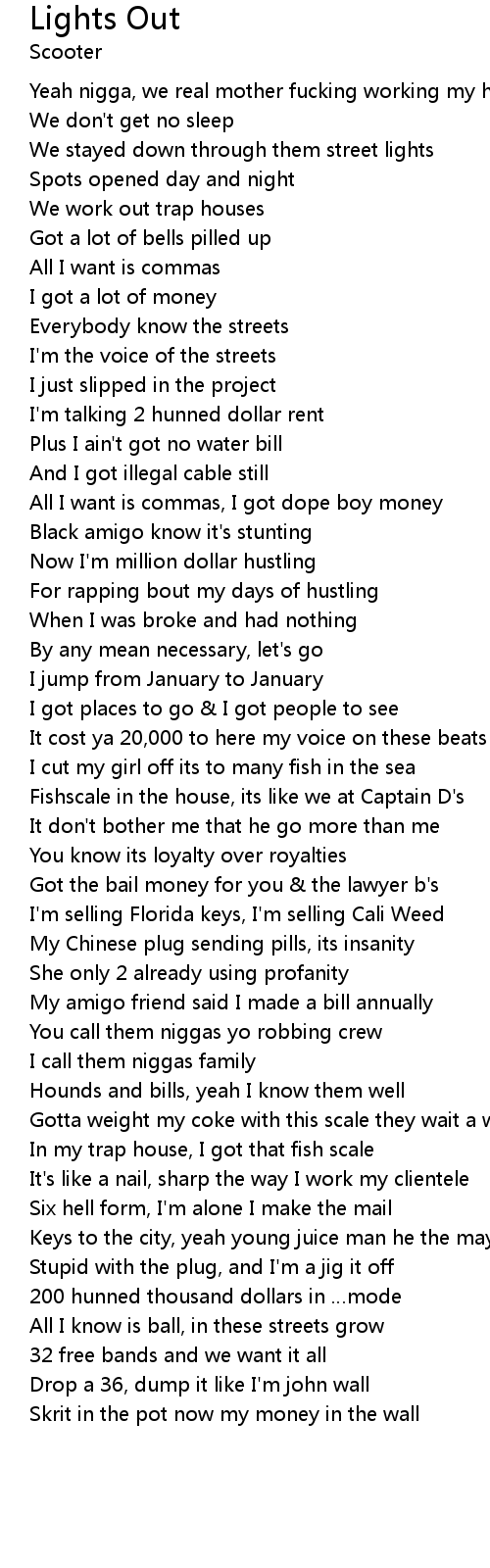 | We stayed down through them street lights | |