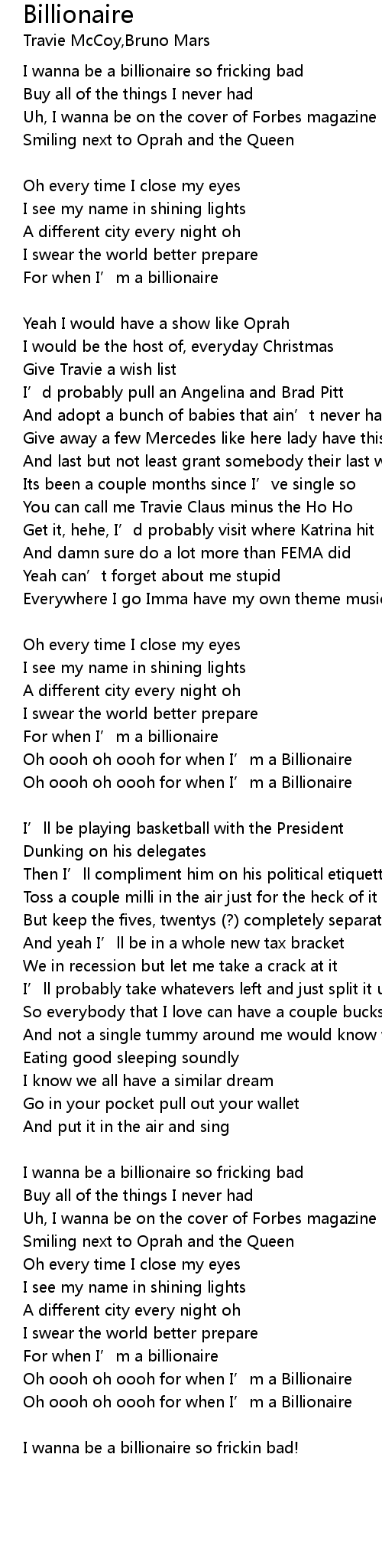| Oh oooh oh oooh for when I' m a Billionaire | |