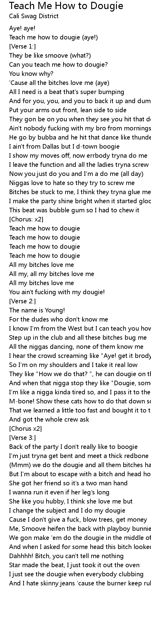 And when that nigga stop they like "Dougie, some more! " |