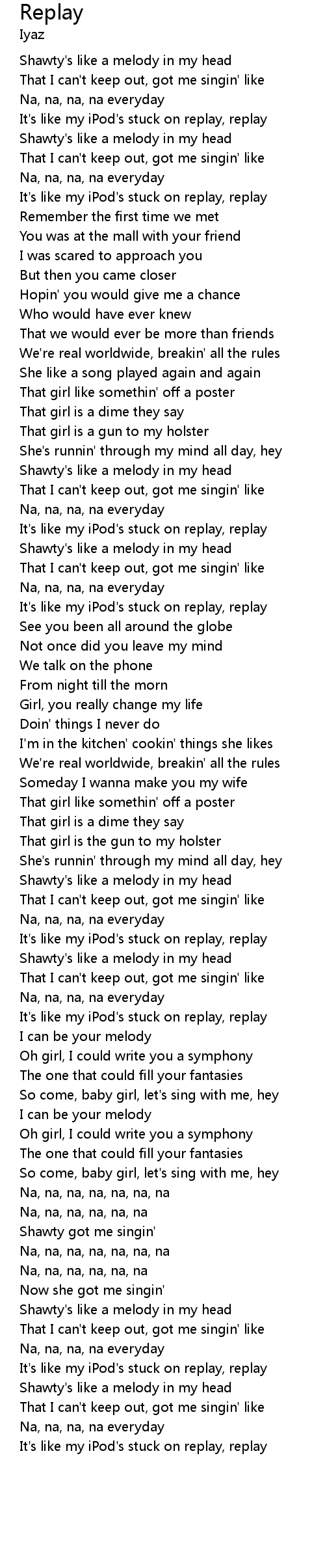 It's like my iPod's stuck on replay, replay |