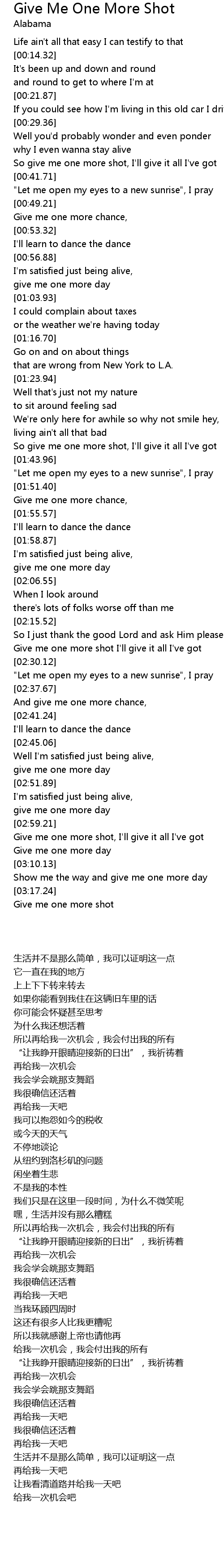 Give me one more shot I'll give it all I've got |