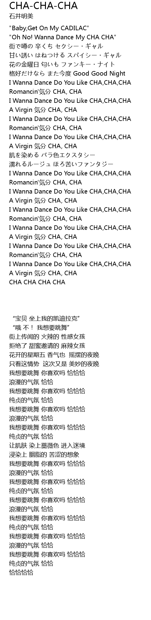 | [02:31.67] | I Wanna Dance Do You Like CHA,CHA,CHA |