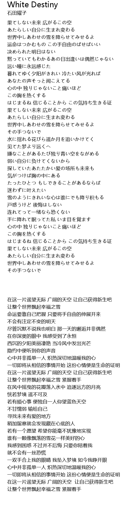 | [02:54.10] | 雪のようにきれいな心は谁にでも降り积もる |
