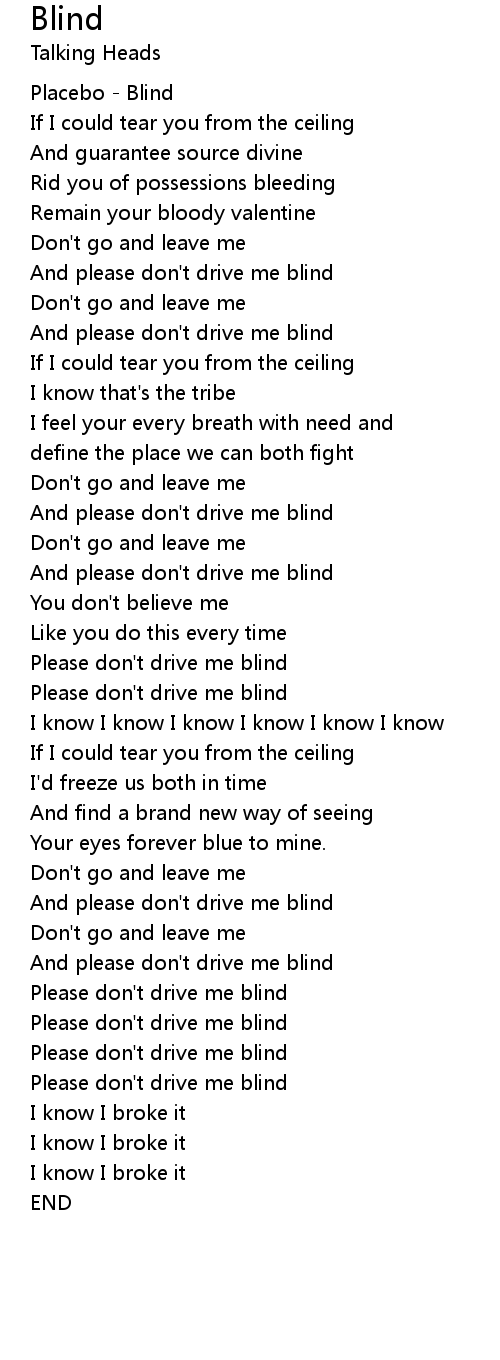 And please don't drive me blind |