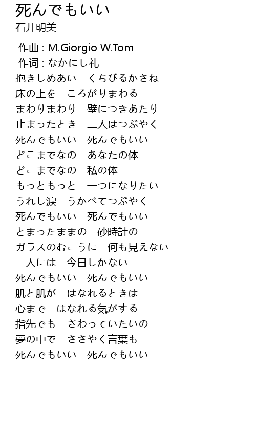 | [03:30.194] | 死んでもいい 死んでもいい |