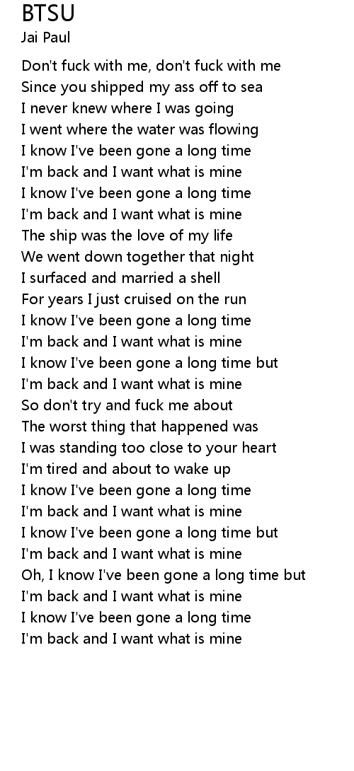 Oh, I know I've been gone a long time but |