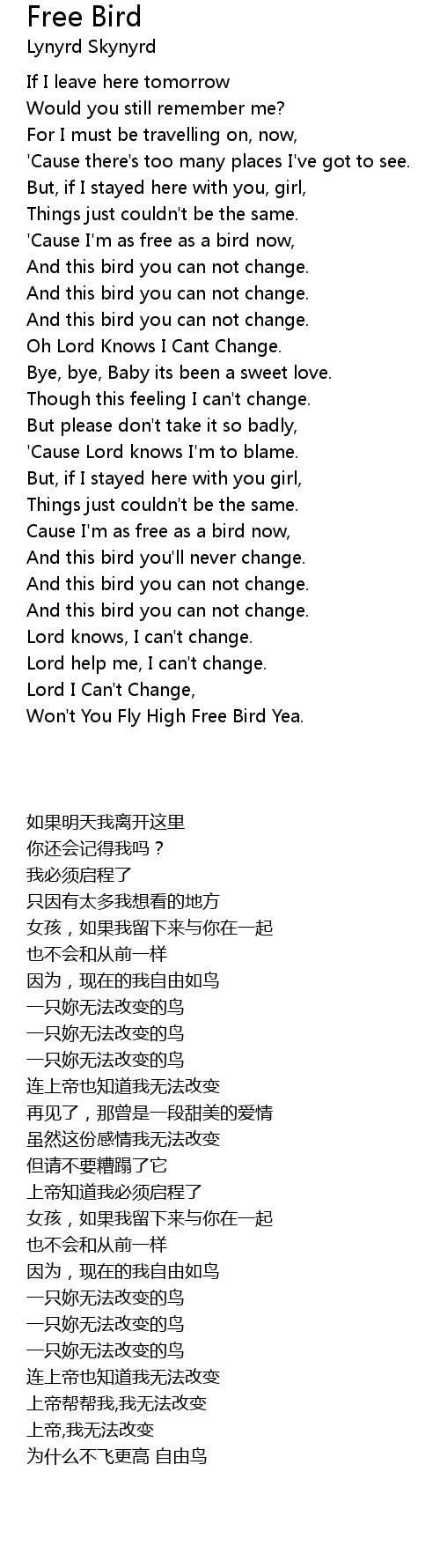 Won't You Fly High Free Bird Yea. |