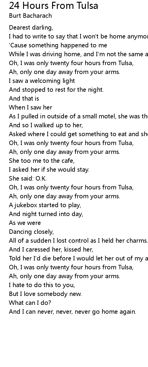 Oh, I was only twenty four hours from Tulsa, |