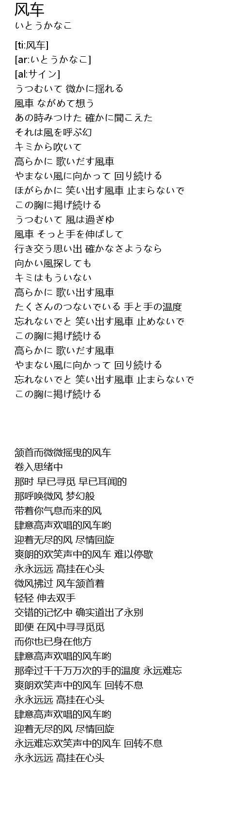| [02:51.58] | 忘れないでと 笑い出す風車 止めないで |