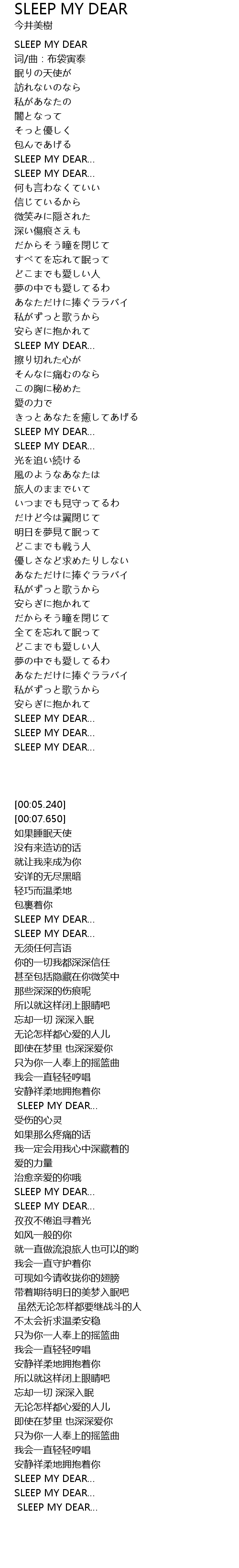 | [04:35.600] | SLEEP MY DEAR… |