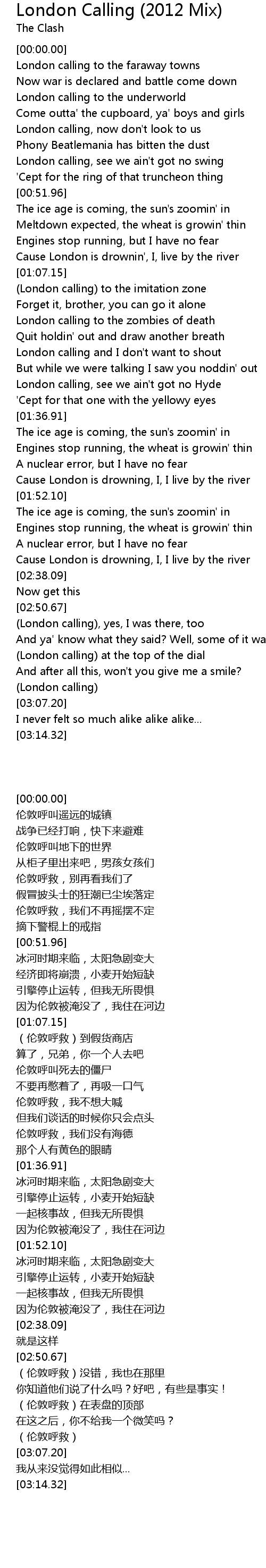 | [00:39.32] | London calling, now don't look to us |