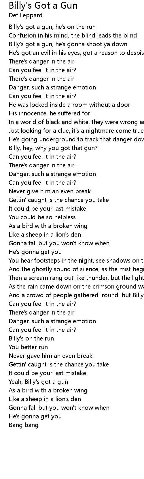 Billy's got a gun, he's gonna shoot ya down |