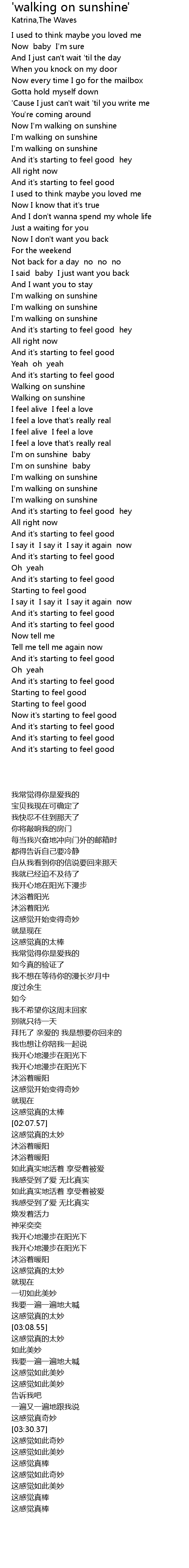 | [02:23.53] | Walking on sunshine |