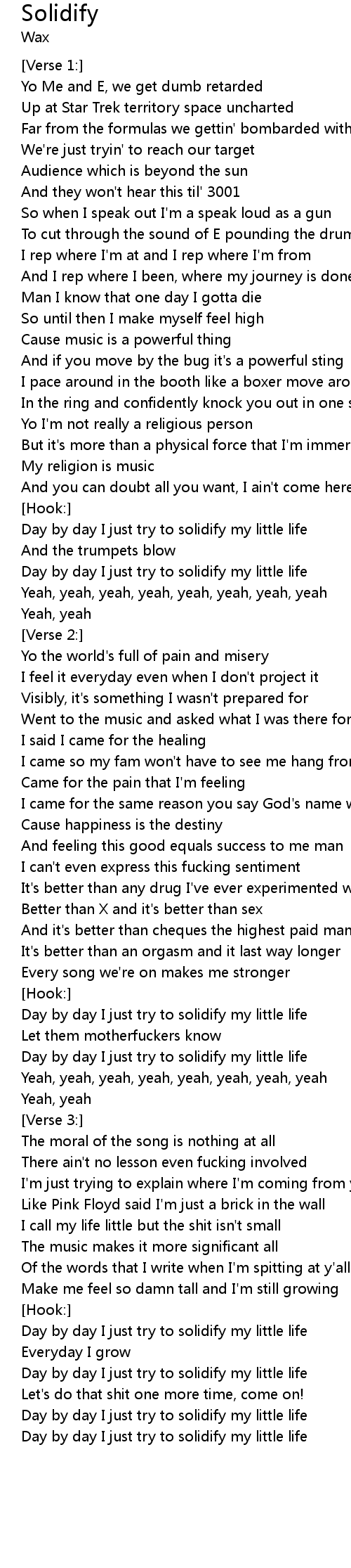 Day by day I just try to solidify my little life |